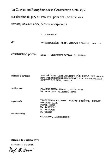 Zeit: 1976 Architekt: J. Brandi & Partner, Göttingen Tragwerksplanung: Ing.-Büro Prof. S. Polonyi, Berlin Meine Leistung als Angestellter: Entwicklung der Decken-Trog-Elemente.