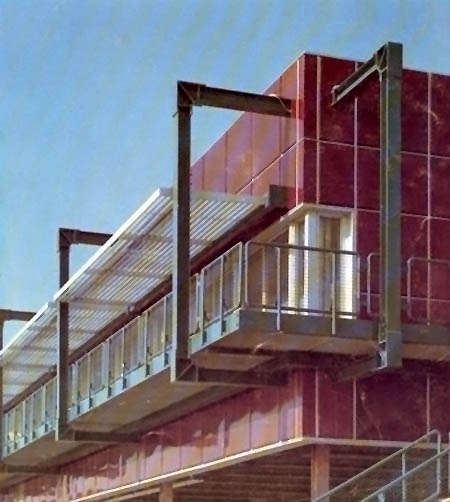 Bauzeit: 1972 - 1974 Architekt: Prof. G. Fesel & M. v. Törne, Darmstadt Tragwerksplanung: Prof. S. Polonyi & Partner, Berlin Meine Leistung als Angestellter: Technische Projektleitung und Ausführungsplanung des Stahl-Stahlbeton-Verbundbaus.
